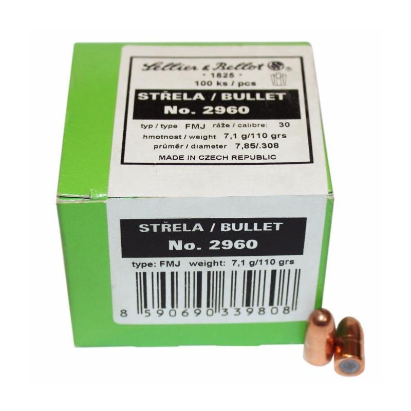 âïž 100 ogives Sellier & Bellot calibre .30 FMJ 110 grs â rĂ©f. n°2960