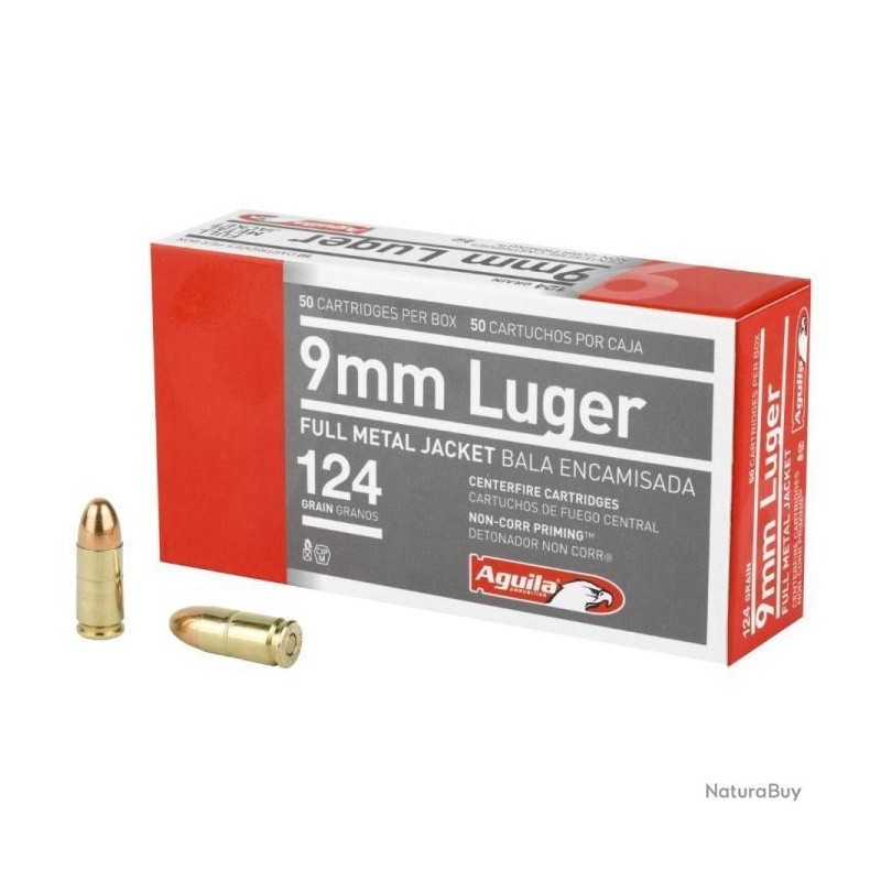 🔶 CARTOUCHES AGUILA 9x19 – 124 grs – FMJ – x50 🔶