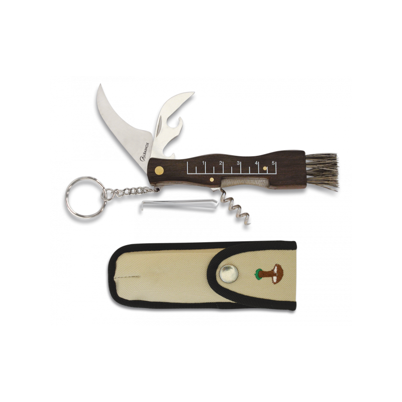Compact et pratique, le couteau à champignon Mini Albainox est l’outil idéal pour les amateurs de cueillette et d’activités outdoor. Équipé d’une lame en acier inoxydable, il permet de couper proprement les champignons sans abîmer le mycélium. Son manche en bois naturel est ergonomique et élégant. Polyvalent, ce modèle intègre également plusieurs fonctions utiles : décapsuleur, ouvre-boîte et tire-bouchon, ce qui en fait un véritable couteau multifonction. Livré avec un étui en cordura robuste, à port vertical, il se transporte facilement à la ceinture.