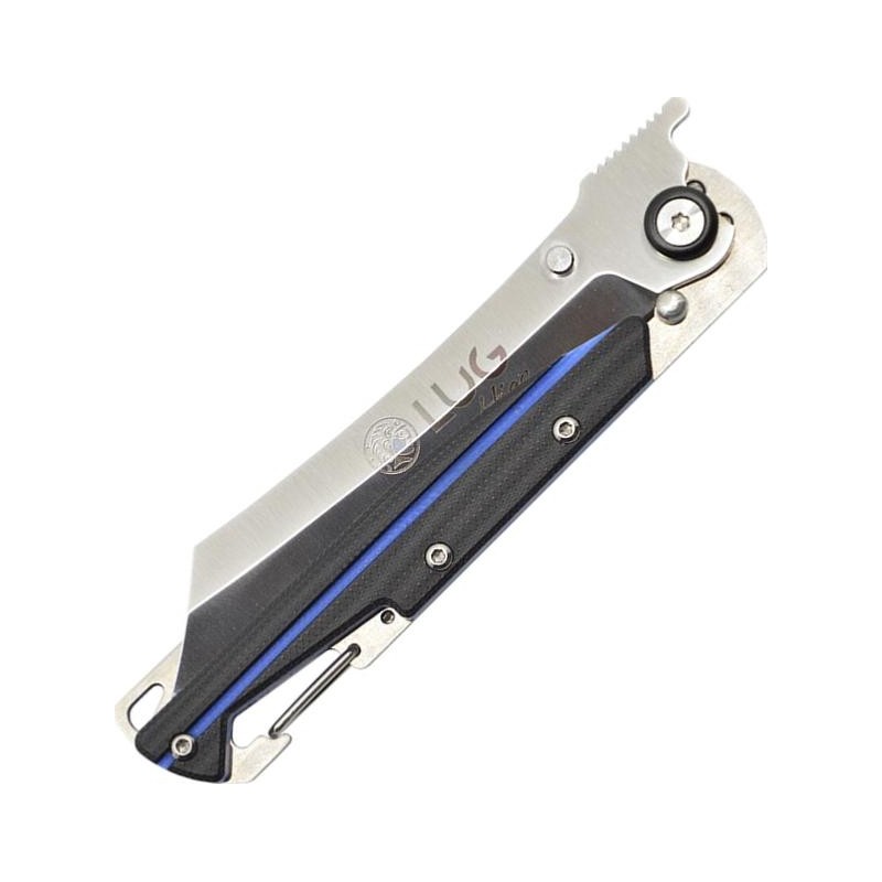 Le LUG SP3S Noir & Bleu (rĂ©f. LUSP3SHBLB) est un couteau pliant au design affirmĂ©, combinant lâĂ©lĂ©gance dâun profil Higonokami japonais et la robustesse dâune conception outdoor moderne. Parfait pour lâusage quotidien, les activitĂ©s de plein air ou les expĂ©ditions lĂ©gĂšres, ce modĂšle sĂ©duit par sa polyvalence, son ergonomie, et sa finition bicolore noire/bleue. DotĂ© dâune lame lisse noire de 8,5 cm en acier inoxydable 7Cr17MoV, il offre une coupe prĂ©cise et durable, tout en restant simple Ă entretenir. Le systĂšme de verrouillage Frame Lock garantit une utilisation sĂ©curisĂ©e en toutes circonstances. Son manche robuste, mĂȘlant G10 texturĂ© et acier, offre une excellente prise en main. Le mousqueton intĂ©grĂ© permet un port facile Ă la ceinture, au sac ou Ă un mousqueton principal. Avec ses 195 mm de longueur totale, ce modĂšle reste compact et maniable.