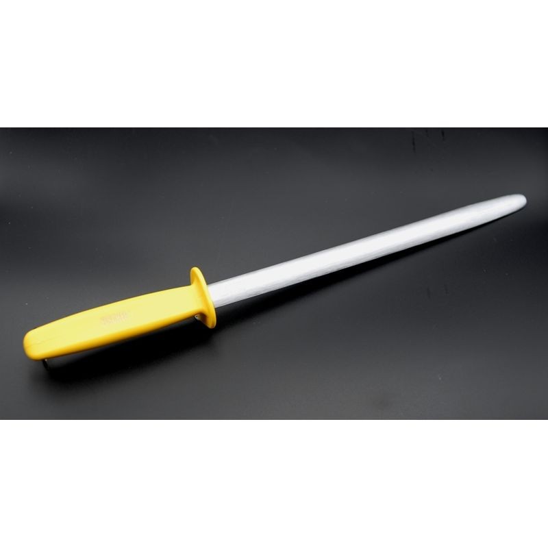 Fusil Ă aiguiser professionnel de la marque Fischer, conçu pour les professionnels de la boucherie, charcuterie, cuisine et mĂ©tiers de la dĂ©coupe. Sa mĂšche ovale chromĂ©e dure de 30 cm offre une surface de contact optimale pour redonner rapidement du fil aux couteaux, tout en respectant le profil de la lame. LivrĂ© avec un manche jaune ergonomique, Ă©quipĂ© dâune garde et dâun anneau pour une manipulation sĂ»re et un rangement pratique. Fabrication française (Thiers) â gage de qualitĂ© et de savoirâfaire.