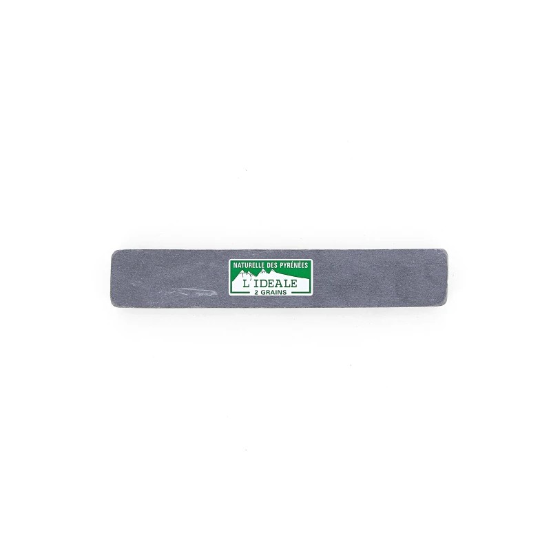 La Pierre Naturelle Aiguise-Tout 23 cm est un outil d'affûtage artisanal, conçu à partir de grÚs schisteux extrait des Pyrénées Ariégeoises. Grùce à ses deux faces, elle permet un aiguisage complet : Une face à grain grossier pour dégrossir et redonner du fil aux lames émoussées Une face à grain fin pour les finitions et un tranchant rasoir EntiÚrement naturelle, cette pierre ne possÚde pas de graduation précise comme les pierres synthétiques, mais offre un affûtage doux, progressif et respectueux des aciers, notamment ceux des couteaux traditionnels.