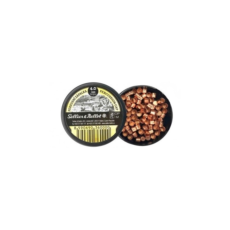Amorces Sellier & Bellot 4.0 PN spécialement conçues pour revolvers à poudre noire. Pack de 100 amorces de qualité, fiables et compatibles avec la plupart des cheminées des revolvers historiques et répliques poudre noire. Idéales pour séances de tir, entraßnement et reconstitutions.