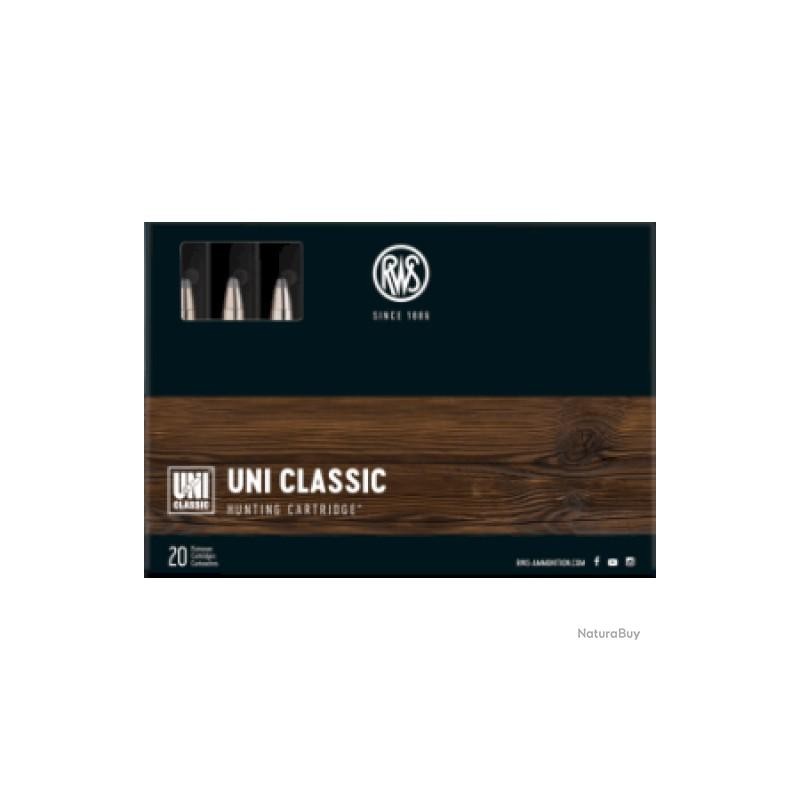 Cartouches RWS Uni Classic spécialement chambrées en .30R Blaser, chargées avec une ogive 180 gr (≈ 11,7 g). Munitions de qualité fabriquées par RWS, adaptées à la chasse au gros gibier et aux tirs nécessitant une balistique fiable et reproductible.