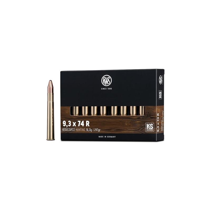🐗🎯 Cartouches RWS 9.3x74R KS – 16g (247grs) | Boîte de 20