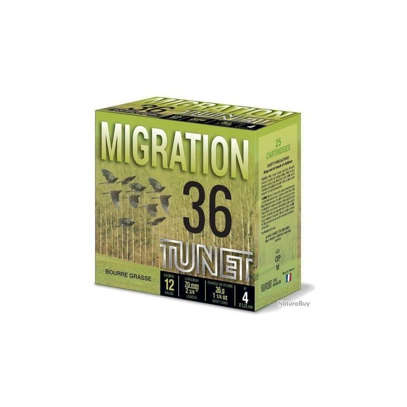 đ¶ CARTOUCHES TUNET MIGRATION calibre 12/70 â 36 g â plomb n°7 â bourre grasse â x25 đ¶