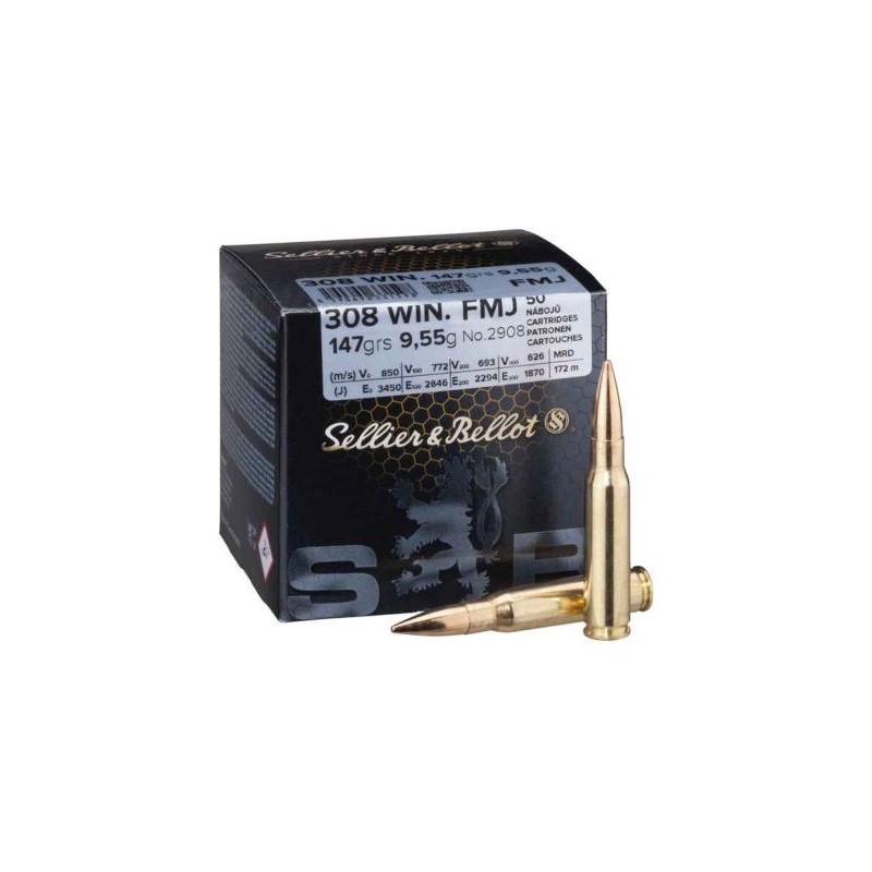 đ¶ CARTOUCHES SELLIER & BELLOT â .308 Win â FMJ â 147 gr â x50 đ¶