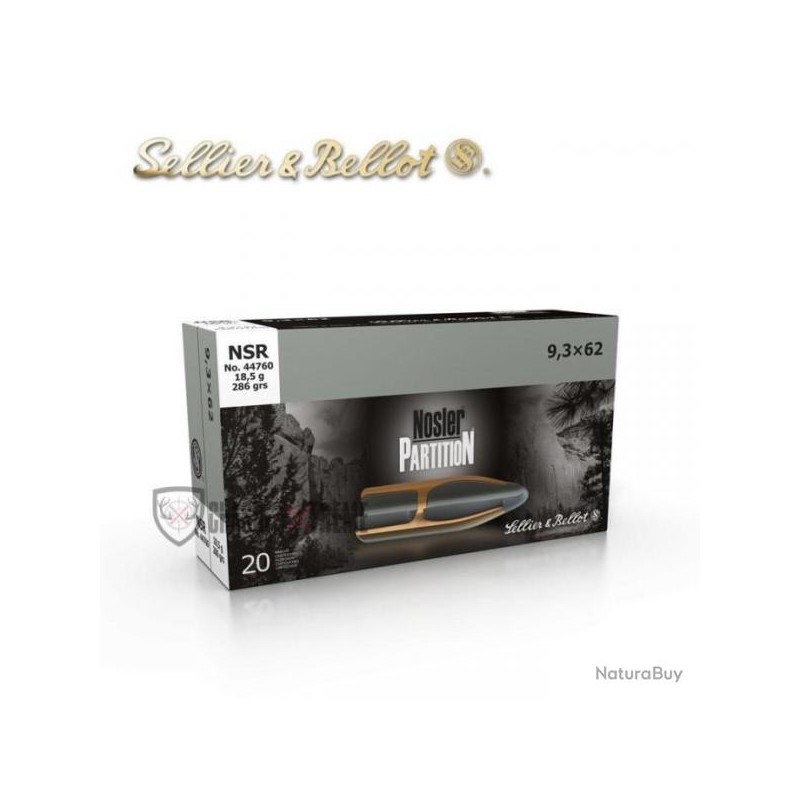 Cartouche Sellier & Bellot calibre 9.3X62 nosler partition 286grs 18.5g x20