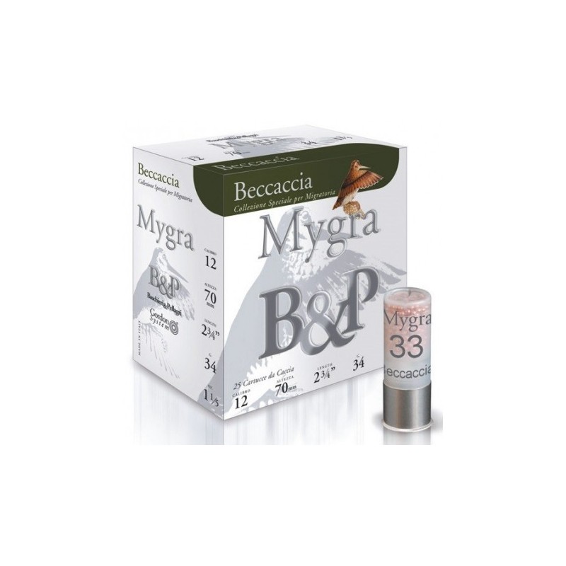 B&Pđ¶ CARTOUCHES B&P MYGRA BECCACCIA â Calibre 12/70 â 34g â Bourre Grasse â N°8,5 â x25 đ¶