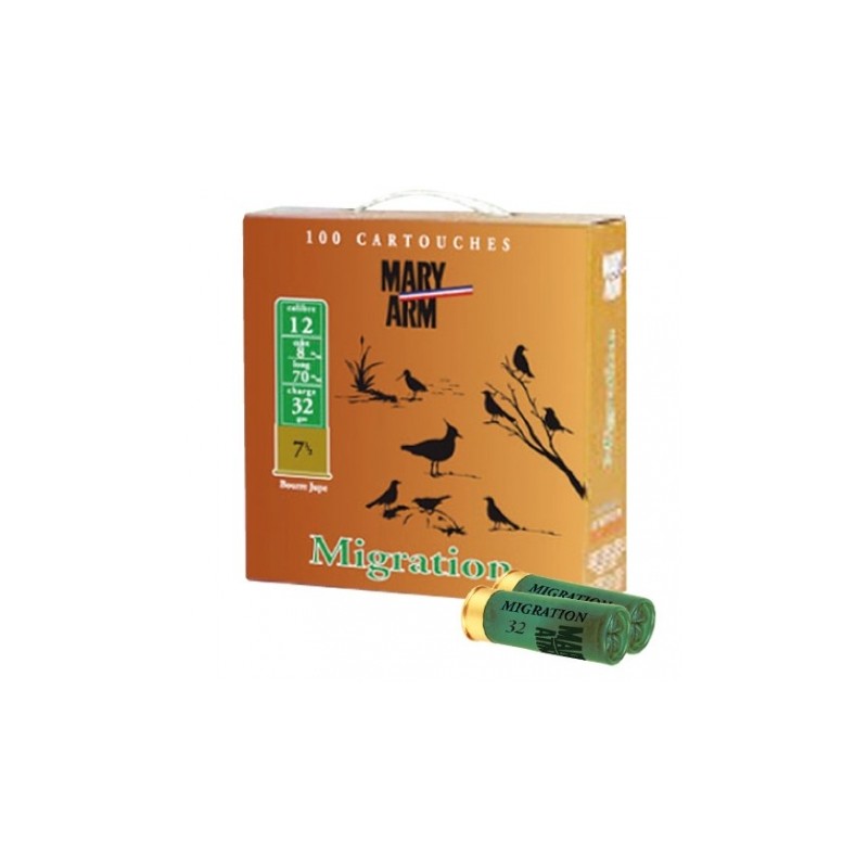 đ¶ CARTOUCHES MARY MIGRATEUR â Calibre 12/70 â 32âŻg â Bille de plomb n°7.5 â x100 đ¶