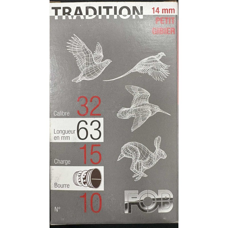 đ¶ CARTOUCHES FOB calibre 32/63 (14 mm) â Bourre Jupe â 15 g â Plomb n°10 â x10 đ¶