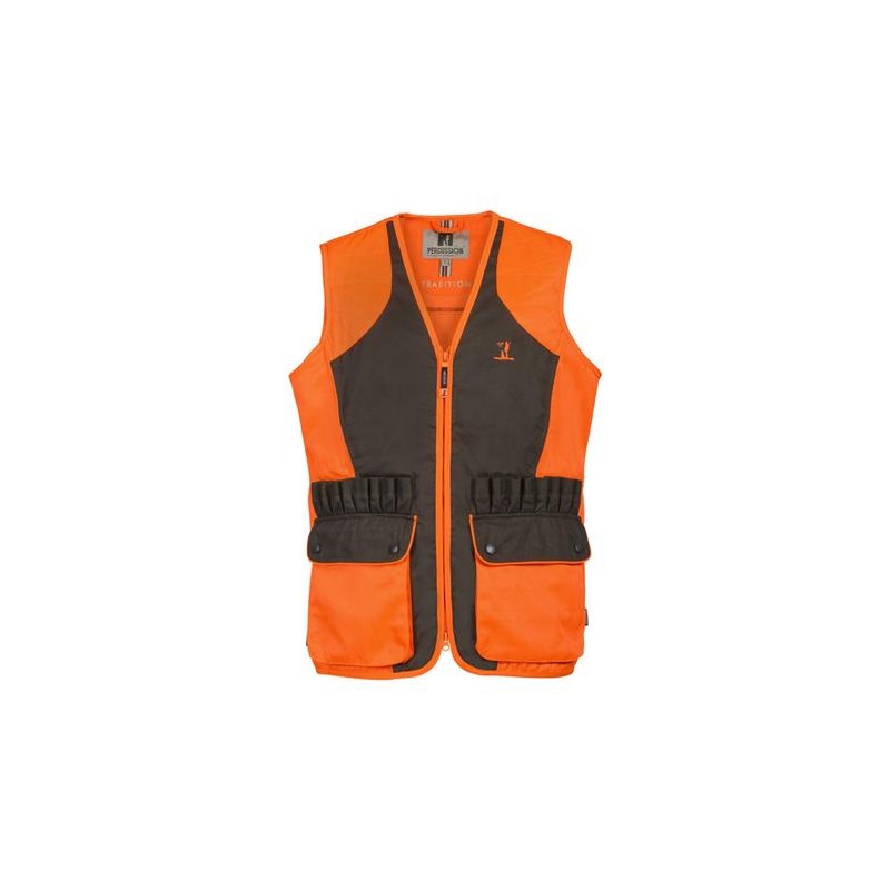 Le gilet Percussion Tradition Haute Visibilité est un indispensable pour les chasseurs recherchant un équipement fiable, résistant et bien équipé, tout en assurant une sécurité maximale grâce à son coloris orange fluo. Conçu dans un mélange polyester/coton déperlant, il est aussi fonctionnel que confortable, avec de nombreux rangements bien pensés pour les munitions et accessoires essentiels. Ce gilet est parfait pour la traque, la battue ou le poste, avec des cartouchières intégrées, un carnier étanche, et un anneau porte-gibier, le tout dans une coupe robuste et traditionnelle, renforcée aux épaules pour plus de durabilité.